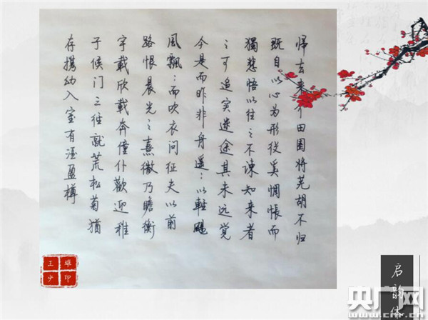 王少雄是重慶人,四川大學外國語學院法德文系法語專業大一在讀,于2015年生成字體模板制作了個人的手寫字體——少雄啟韻體從每天摹寫五張啟功書法開始,逐漸摸透字體的結字規律,也一點點感受、參悟啟功先生的精神境界。他找到了北師大出版社的《啟功絮語》這本書,不斷臨習,將近九十頁的內容寫了不下二十遍,同時也用很細的小楷毛筆進行臨習。