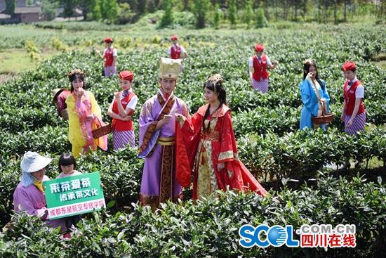 四川在線消息(四川在線記者 楊德)最美人間四月天,采茶賞花春色俏。28日,雅安蒙頂山的皇茶貢茶地里,一群穿著唐裝、空姐服——畢業(yè)于成都東星航空專修學院的空姐,和當?shù)氐牟柁r(nóng)進行了一次“親密接觸”,學采茶,感受茶文化的魅力。體驗勞動的艱辛,培養(yǎng)以后在飛行工作崗位上的抗壓力和忍耐力。