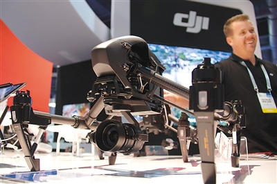 2016年1月9日,在美國拉斯韋加斯消費電子展上的大疆新款無人機(jī)“悟”Inspire 1 Pro。 新華社記者 楊 磊攝