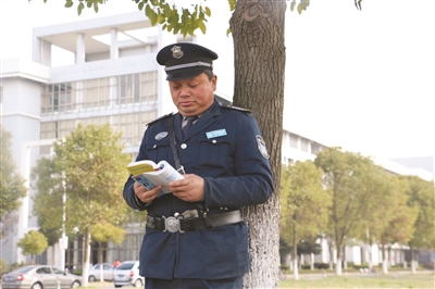別看保安華祝于去年就進了學校,其實師生對他又熟悉又陌生。熟悉的是每天進入校園時,都會看見華祝于在學英語,是一位名副其實的“勵志哥”。陌生的是,很多人都請華祝于幫過忙,但是對他沒有太多的關注,因為他實在太普通。