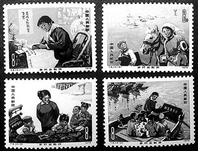 在新中國的紀念郵票上,還有三次展現了人民教師的形象:特13-16《高等教育》上的男教師、J8-13《牧區小學》上的藏族女教師、T9《鄉村女教師》中的四位鄉村小學教師。