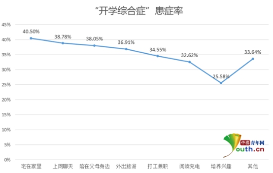 圖為暑期不同度假方式人群的“開學(xué)綜合癥”患癥率曲線圖。中國青年網(wǎng)記者王龍龍制圖