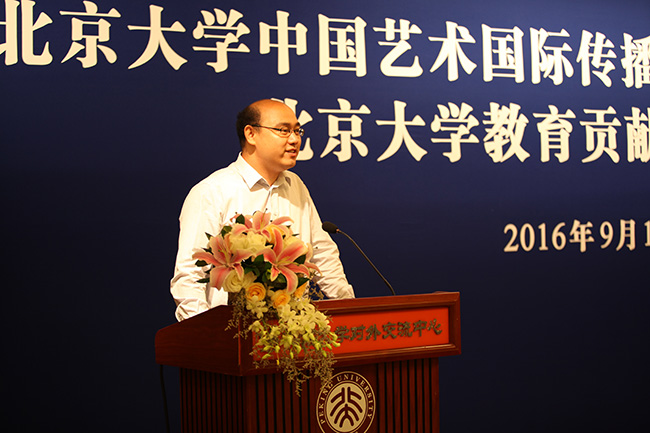 胡俊副秘書長在致辭中指出,教育的可持續發展得益于社會各界的支持,國家和北京大學雖然對中國藝術國際傳播等學科提供了基本的支持,但更希望在社會多方的共同支持下,通過“中國藝術國際傳播基金”促進該領域的學術發展,為國家培養更多的優秀人才。