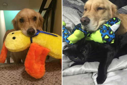 據外媒報道,所有狗狗都會喜歡玩具,不過美國一只3歲金毛莫吉托則對玩具到達“癡迷”的程度——它每晚都會挑選不同的玩具,帶到樓上一同睡覺,儼如“選妃侍寢”。