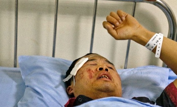 昨日下午3時30分許,長安醫(yī)院急診科病床上,老楊的兒子躺在床上,左手半握拳搭在額頭,右額頭上貼著紗布,右眼角周邊淤血痕跡明顯,面部也有多處淤血。病床上的診斷顯示:閉合性顱腦損傷,顏面部皮膚組織挫裂傷,鼻外傷。老楊說,兒子一直說腹腔部疼痛、頭疼,病情還需要進一步診斷。