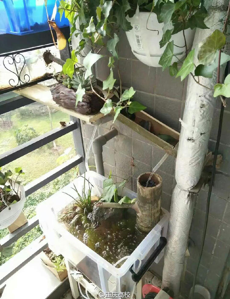 據(jù)網(wǎng)友爆料,重慶電子工程職業(yè)學(xué)院的一名同學(xué)在宿舍搞起了水產(chǎn)工程,整個(gè)陽(yáng)臺(tái)擺滿了綠植、水草、玻璃缸,還有兩只烏龜,陽(yáng)臺(tái)一秒變花園,網(wǎng)友感嘆:這是要構(gòu)建一個(gè)小型生態(tài)系統(tǒng)啊!
