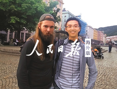 為了能夠更好地融入到公司環境,薛峰(右)在工作之余和當地民眾一起游玩,學習挪威語。
