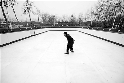 清華附小仿真冰場昨天落成,這塊僅用一個月時間完成生產(chǎn)、安裝、測試的“冰場”,將可供學(xué)生一年四季滑冰、打冰球。
