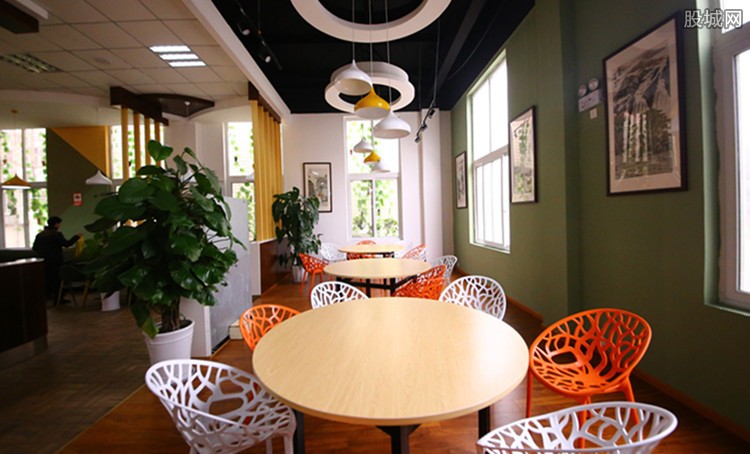 據(jù)悉,食堂內(nèi)部全場(chǎng)以暖色調(diào)為主,搭配有墨綠色、白色的桌子和凳子,橘色和白色的吊燈,更有鏤空設(shè)計(jì)的凳子,文藝且不失藝術(shù)感。