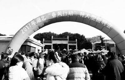 昨天上午,暖陽照耀下的武昌丁字橋施洋公園內人頭攢動,近萬求職者擠爆2017湖北省春風行動大型招聘會現場。繼農民工正月初八就返漢搶崗后,大學生求職者正月十五開始涌現。