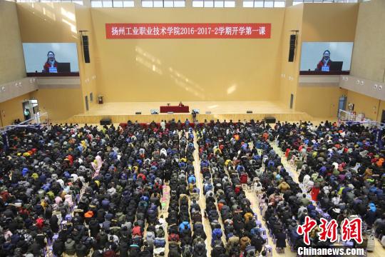 中新網(wǎng)南京2月15日電 (記者 崔佳明 通訊員徐華)又到一年開學(xué)季,揚(yáng)州工職院15日舉行了開學(xué)第一課,6000人聆聽全國教書育人楷模、優(yōu)秀教師林冬妹的思政課。
