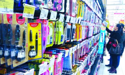 相對來說,小學生開學,花費是比較少的。但是,普通的文具用品,已經(jīng)入不了學生的眼了,他們更喜歡新奇特的東西。在五愛市場和龍之夢的小商品城,大部分都是家長帶著小孩子來買文具。一位剛上小學二年級的孩子家長說,老師給開了新學期需要采購的文具用品清單,但是具體買什么樣的,都是孩子自己做主。記者看到,普通的削筆刀也就是三五元錢,但是造型奇特的,價格就立馬漲了上去,一款設計成坦克形狀的削筆刀,標價是25元。小學生們還就喜歡這些特別點兒的,一位攤主介紹說,新奇的文具銷量超過普通文具銷量的一半還多。