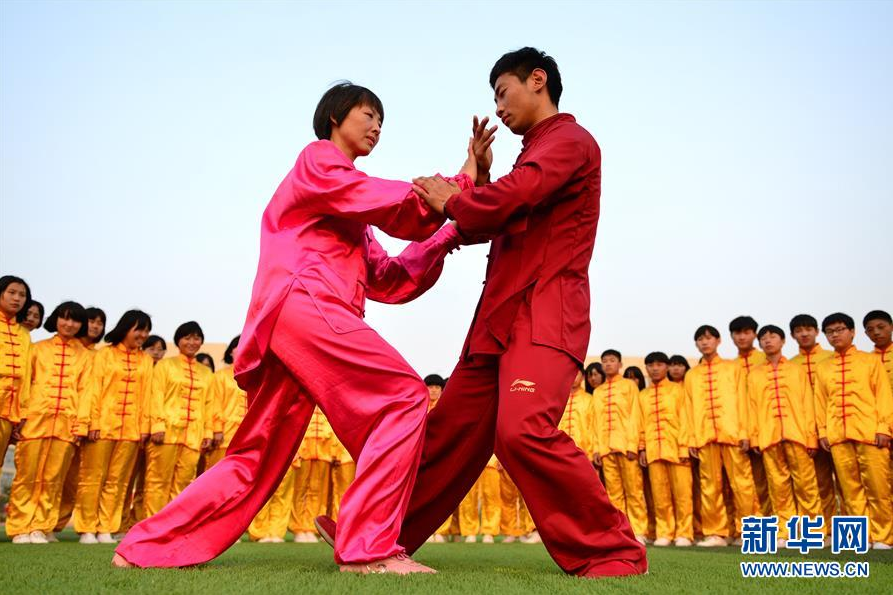4月12日,河北省廣宗縣第一中學學生在練習太極拳。今年2月以來,河北省邢臺市廣宗縣第一中學開設太極拳課程,利用體育課和課間操時間組織1000余名學生練習太極拳,以提升學生身體素質。