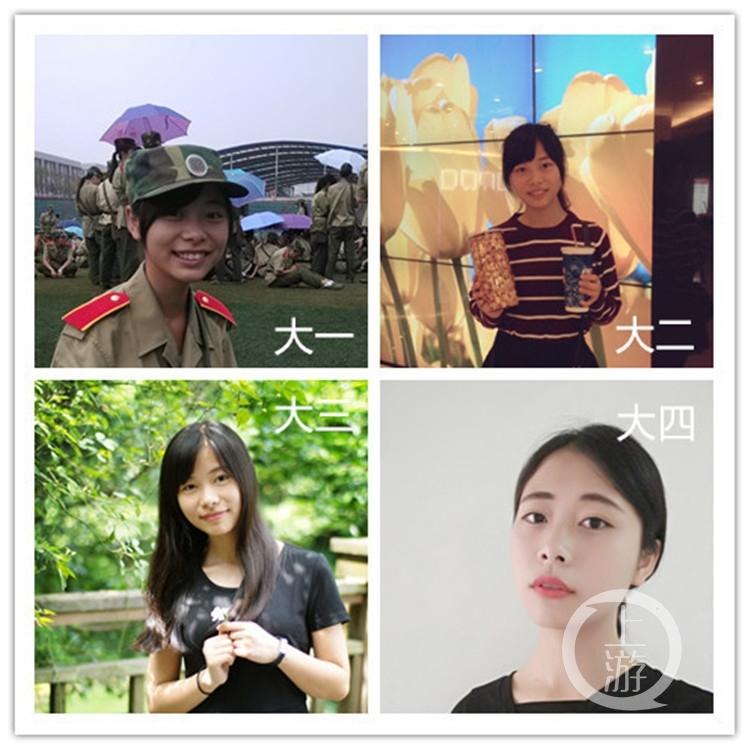 近日,重慶多所高校的畢業(yè)生,用四年的照片來記錄大學(xué)四年的成長(zhǎng)痕跡,引發(fā)網(wǎng)友感嘆。圖為西南大學(xué)秦文琰,不僅樣貌如同換了個(gè)人一般,學(xué)習(xí)更進(jìn)一步,現(xiàn)已保送到武漢大學(xué)新聞與傳播學(xué)院。 -