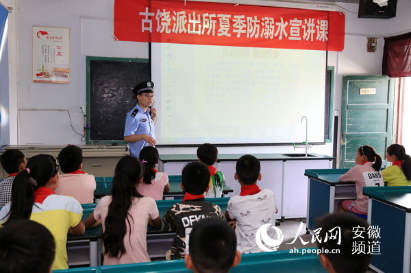 淮北:安全教育課 關愛留守娃(圖),暑期將至,為有效預防暑假期間農村留守兒童溺水事故的發生,讓孩子們過一個平安快樂的暑假,6月12日,淮北市烈山區古饒鎮派出所組織民警走進新華小學開展暑期安全課關愛“留守兒童”主題教育活動,向留守兒童普及防溺水及自救常識等知識,勸告孩子們遠離危險水域,提高孩子們的暑期安全意識和自我防護能力。