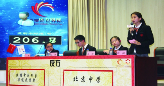 “本場最終比分,正方比反方13.5比1.5,正方北京中學獲勝!”5月3日,2017華語辯論世界杯比賽現場,賽事主席話音甫落,全場響起熱烈掌聲。作為32支代表隊中唯一的中學生隊,北京中學的初中生擊敗了來自各高校的哥哥姐姐,晉級四強。