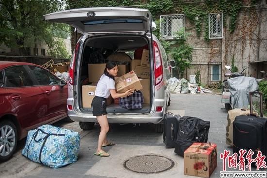 7月1日,北二環外安德路上,劉德天的母親楊女士看著車里的行李,她特地從吉林趕來參加在清華大學讀博的兒子的畢業典禮。劉德天選擇了提供北京戶口的電力規劃設計院工作。他的父母認為北京是最好的地方,但“用三線城市的工資買北京的房子,不可想象”。中國青年報·中青在線記者 李崢苨/攝
