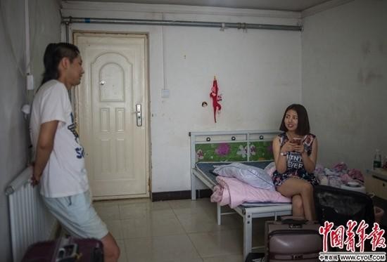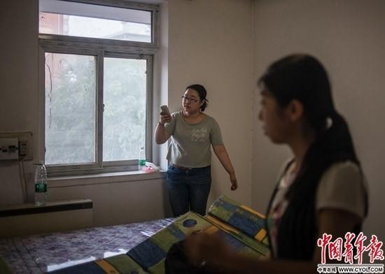 7月2日,東五環外金榆路,剛剛搬進單身公寓的劉白白與同住在這片公寓的朋友聊天。按她的描述,這里是“北京的貧民窟”,居住在這兒的大多是剛剛在京工作的年輕人,每月房租1300元左右。在大連學習服裝設計的劉白白大四時來北京學習繪畫,畢業后決定留在北京做插畫師,月工資6000元。“來北京不久后,我就和男友分手了。北京生活壓力大,父母擔心我撐不下去。”