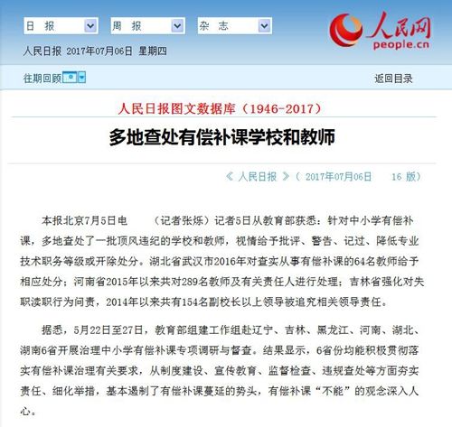 人民網(wǎng)北京7月10日電 (張政)近日,人民日報(bào)記者從教育部獲悉:針對中小學(xué)有償補(bǔ)課,多地查處了一批頂風(fēng)違紀(jì)的學(xué)校和教師,視情況給予批評、警告、記過、降低專業(yè)技術(shù)職務(wù)等級或開除處分。湖北省武漢市2016年對查實(shí)從事有償補(bǔ)課的64名教師給予相應(yīng)處分;河南省2015年以來共對289名教師及有關(guān)責(zé)任人進(jìn)行處理;吉林省強(qiáng)化對失職瀆職行為問責(zé),2014年以來共有154名副校長以上領(lǐng)導(dǎo)被追究相關(guān)領(lǐng)導(dǎo)責(zé)任。