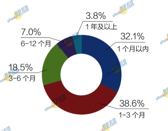 在獲得國內第一份工作耗時方面,花費1-3個月的占比最高,為38.6%,花費1個月以內的占32.1%,相較2015年的40.3%有所下降。此外,花費3-6個月的占18.5%,花費6-12個月的占7%,花費1年及以上的占3.8%。