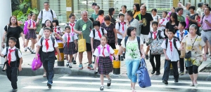 昨日一大早,越秀區(qū)的街道上滿是趕回學(xué)校的孩子和家長。廣州日報(bào)全媒體記者黎旭陽 攝