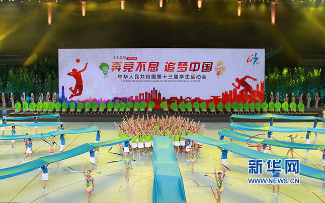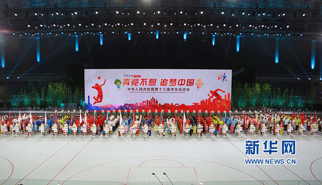新華網杭州9月4日電 3日晚,第十三屆全國學生運動會在杭州黃龍體育館拉開帷幕。
