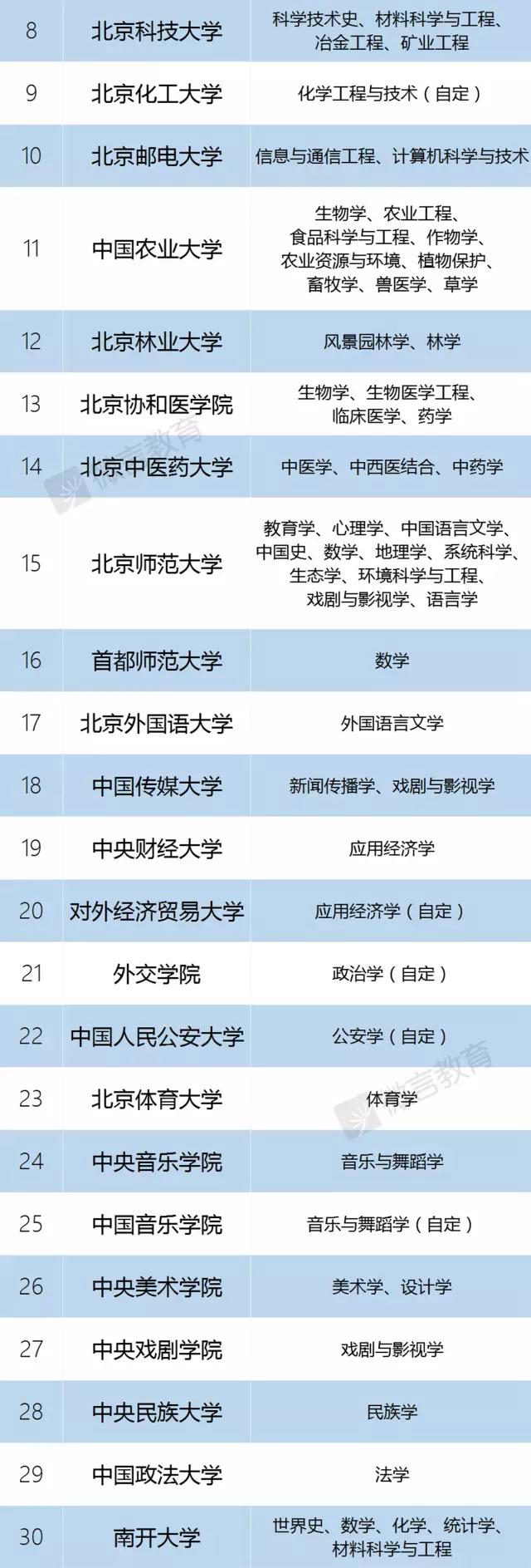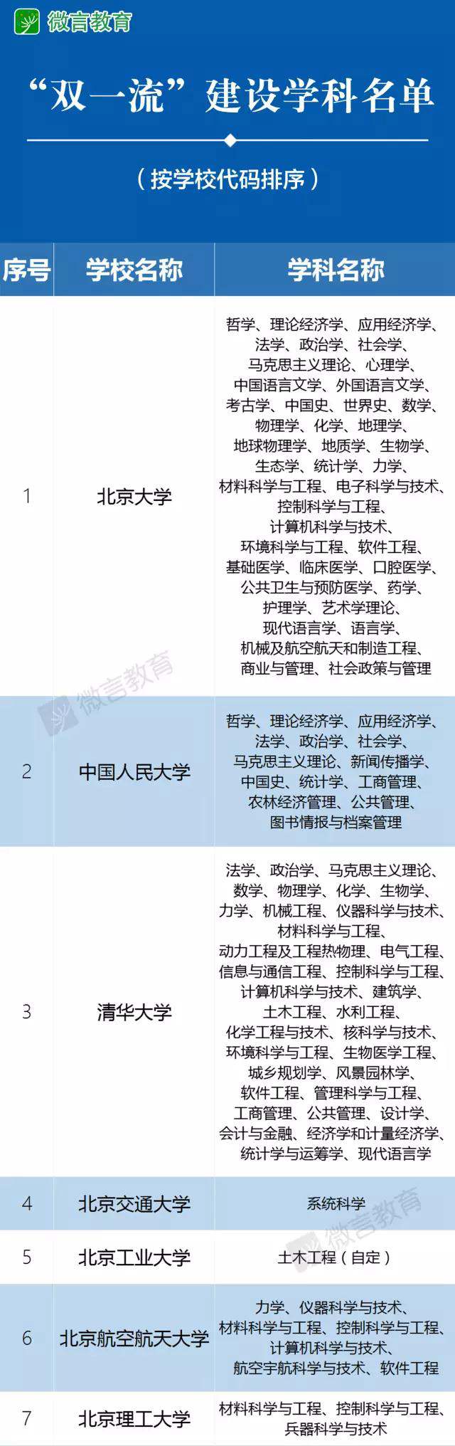 據(jù)教育部官方微信“微言教育”消息,教育部、財(cái)政部、國家發(fā)展改革委日前印發(fā)《關(guān)于公布世界一流大學(xué)和一流學(xué)科建設(shè)高校及建設(shè)學(xué)科名單的通知》,公布世界一流大學(xué)和一流學(xué)科(簡(jiǎn)稱“雙一流”)建設(shè)高校及建設(shè)學(xué)科名單。