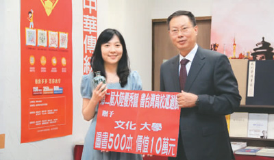 10月11日,在“弘揚(yáng)中華傳統(tǒng)文化、促進(jìn)兩岸文化交流”的會標(biāo)下,大陸出版的各類書籍散發(fā)出滿室書香,“第二屆大陸優(yōu)秀圖書臺灣高校巡回展”在臺北宣布開幕。