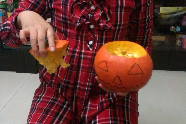 再說回到挖南瓜這件事,幼兒園給孩子和家長開出的親子作業(yè),其實成本都很低,材料也容易得到,除了能做個漂亮的南瓜燈之外,里面的材料還能挖出來做頓美餐呀!