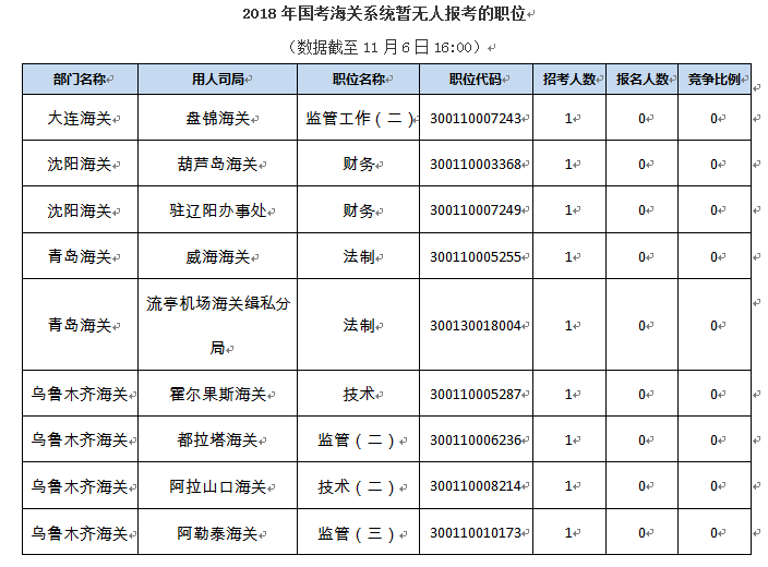 我們匯總整理了暫時無人報考的職位相關信息,共有27個職位暫時無人通過審核,9個職位無人報考,其中無人報考的職位如下表,尚未報名的考生可關注下這些職位。