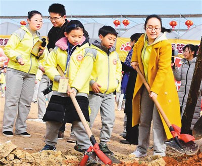 湖南長沙:孩子們體驗迎春禮,2月4日是農歷二十四節氣之首的“立春”,湖南長沙諾貝爾搖籃少年兒童農場舉辦傳統迎春禮等活動,再現長沙消失100多年的迎春禮場面。圖為孩子們在種樹。本報記者 趙樹宴攝