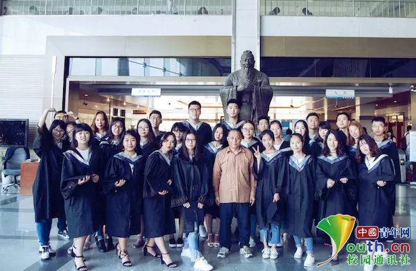 “張爺爺,我們和您一起拍張畢業(yè)照吧。”畢業(yè)季,在中國(guó)石油大學(xué)(華東)圖書館,一隊(duì)隊(duì)身著學(xué)位服的畢業(yè)生簇?fù)碇?9歲的“書香守護(hù)人”張景海,在孔子像前幸福地拍合影。