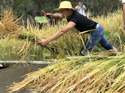 鐮刀、草帽、雨靴、防水服……9月11日,在四川大學錦城學院(以下簡稱“川大錦城”)的農場里,正值中午,幾十名同學卻在農田里麻利地干起了農活,割水稻、打谷子、鋤地……大伙分工明確,忙得熱火朝天。