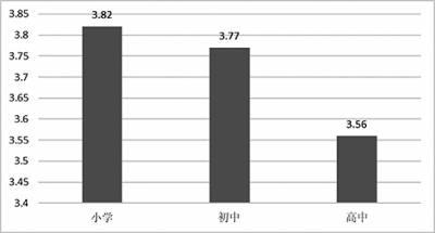 在6分中平均得分僅為3.16分的分值,說明當下中國兒童在面對不同的人、想法與意見時的開放性不高。相對而言,小學生更樂于接受不同的想法與意見,高中生更傾向于堅持自己的看法與意見。