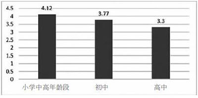 兒童專注自己事情的心理品質在小學中高年段、初中和高中表現出明顯差異,小學生專注品質分值最高,為4.12分,到高中生降為3.3分。這個變化有兩方面的解釋。一是隨著年齡的增加兒童注意力的集中品質有所下降,更容易分散;二是隨著年齡的增加,兒童注意力分配水平能力在提升。