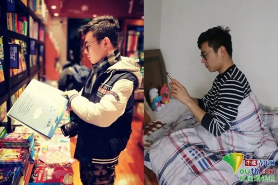 圖為河北大學學生蘆猛春節回家前后的對比照。他說:“回家前是個文藝小青年,相機,咖啡,圖書館;回家后不洗臉不洗頭,手機,零食,暖被窩。寒假生活過得日漸油膩,可能就是家帶來的安全感吧。不過,假期過半,也該做出一些改變啦!北救斯﹫D