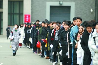 早上8點,京城飄起了雪花,位于南鑼鼓巷的中戲東城校區(qū)前,等待入場的考生已經(jīng)排起幾十米的長隊。今天是正月初八,年味兒還未退去,不少考生告訴記者,這個春節(jié)假期他們選擇了在京備考過年。在候考教室,記者見到了來自山東的考生王佳吻,她正手捧材料,認真準備著朗誦篇目,一首現(xiàn)代詩《紙船——寄母親》。小王告訴記者,為了實現(xiàn)自己的表演夢想,她已經(jīng)兩年沒有回家過年了,準備這首詩是想表達自己對家的思念,也希望這份思鄉(xiāng)之情能帶給自己好運。