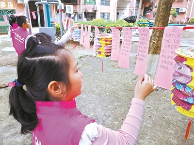 南坑社區“快樂四點半”課堂元宵節組織孩子猜燈謎活動。