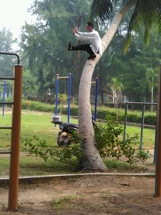 “海南大學內驚現神人,椰子樹上練功。”近日,這樣一則圖片內容在網上火了。從照片看,練功者為一白衣男子,其先在草地上練功,隨后鏡頭轉到距離地面有四五米高的椰子樹上,白衣男子在樹上練功,時而金雞獨立,時而單腿蹲坐,一招一式鎮定自若,頗有大家風范。