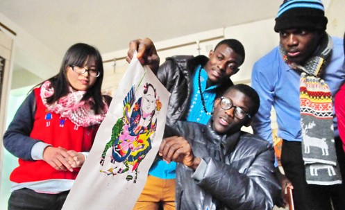 12月15日,來自加納的留學生在學習木版年畫制作。聊城東昌府木板年畫在2008年入選第二批國家級非物質文化遺產名錄,當日,在山東聊城大學學習的6名外國留學生來到聊城市東昌府木版年畫社,向木版年畫藝人了解年畫的起源,學習制作工藝和技巧,感受中國傳統文化。張振祥 高麗君 攝
