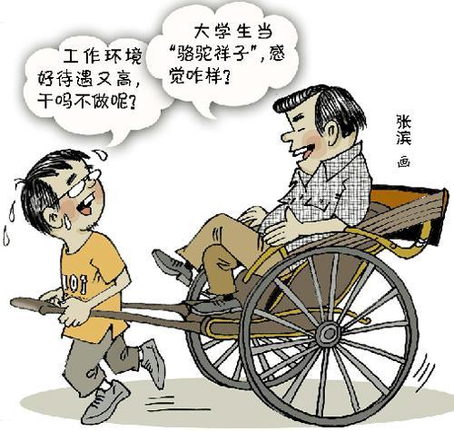 對于月入過萬的大學生車夫,是否能獲得大學生的青睞,記者采訪了20名大專以上學歷的大學生,有15人明確表示不考慮,應屆畢業生劉林說:“這個待遇對于剛畢業的大學生來說算是挺不錯了,但車夫聽上去很低端,像是賣體力活兒的,沒有什么附加價值。”也有人認為“實在沒辦法跟親戚朋友開口啊,別的同學一說是白領,多少錢別人不管,好歹坐辦公室,一說我在北京蹬三輪車,父母都抬不起頭來。”河南人張樂坦言。