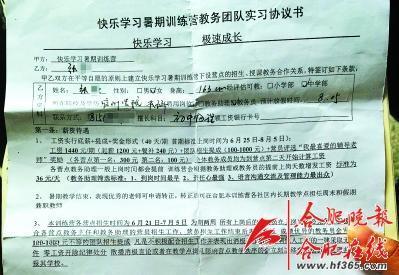 說起這段打工經(jīng)歷,剛上大一的張敏立刻打開了話匣子。今年6月初,尚在學校準備期末考試的張敏無意中接到一張兼職傳單。“每天30元,專門給孩子上兩個小時數(shù)學課,補助每月另發(fā)。”看報酬不錯,又可以在實踐中鍛煉自己,張敏立刻報了名。隨后幾天,她與同校另外17名大學生一同參加了面試和培訓。