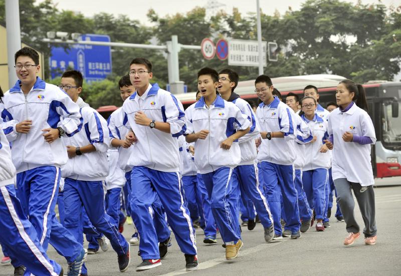 10月14日,成都七中萬達學校實行三年跑六百公里才能畢業,現場學生開始長跑。