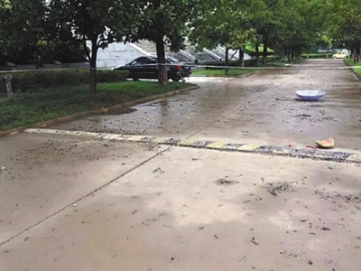 8月8日,雨停了,徐州工程學院城南校區,積水逐漸退去,水泥路面重新裸露出來,淤泥還未干透,一地的灰黃顏色。靠近學校北門的一段路面,被警戒線圍成一圈,向里望去,有一副眼鏡和一把仰面朝天的雨傘。而雨傘和眼鏡的主人,卻再也不能回來認領。