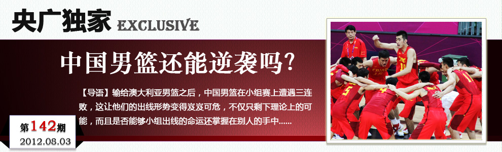 中國男籃以61比81負于澳大利亞隊遭遇小組賽三連敗后,姚明對比賽發表了看法,“中國隊手感太不好,第四節一下被對手領先十幾分,這就沒戲了!”輸掉出線的關鍵一戰后,男籃命懸一線。最后一輪對陣英國隊,姚明稱:“得死揍他們了!”【詳細】