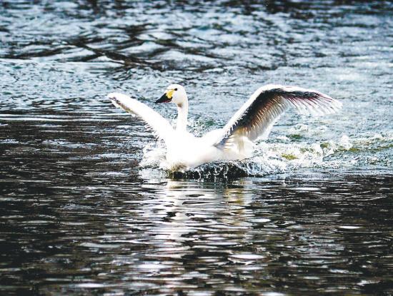 平陸黃河濕地位于秦晉豫黃河金三角地帶。這里背風向陽、氣候溫暖,6000多公頃的濕地都是大天鵝棲息的樂園。從每年10月底開始,天鵝陸續(xù)來到這里,一直待到第二年3月。高峰時天鵝數(shù)量達1萬余只,這里因此被稱為“中國大天鵝之鄉(xiāng)”。