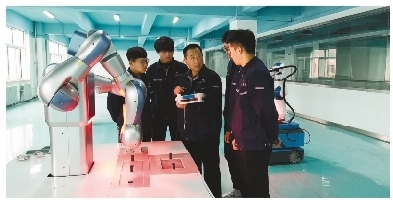 遼寧機電職業技術學院學生使用沈陽新松提供的設備進行實踐。