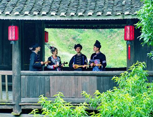 侗家人天生具有天籟之音,張口便會唱歌,學會走路便會跳舞,這是一個富有音樂血統的民族,侗家表演樂器多為蘆笙、琵琶伴奏,歌聲都是無法用字體表述出來。所以觀看演出時,體驗與感受缺一不可。