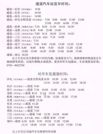 ★距離通道縣城北邊180公里處是懷化市,是通往中國大西南的要道。鐵路交通發達,有“火車拖來的城市”之稱。懷化南站是“滬昆客專”重點客運中心。