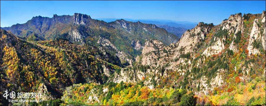 秋臨霧靈,“天高云淡,望斷南飛雁”,漫山遍野的秋菊花,在秋風中格外嬌艷而獨領風騷,花楸、接骨木的果實在萬叢綠中透出晶瑩的紅艷。然而最美的要數那層林盡染、流金溢彩的霧靈秋色了。